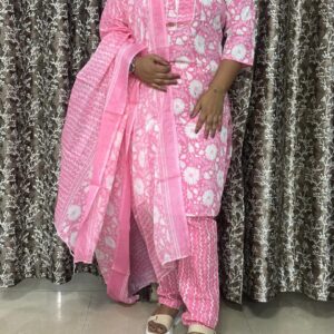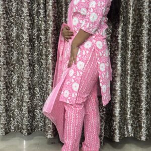 Be the first to review “Elegant Pink Pure Cotton Printed 3-Piece Suit Set with Dupatta”