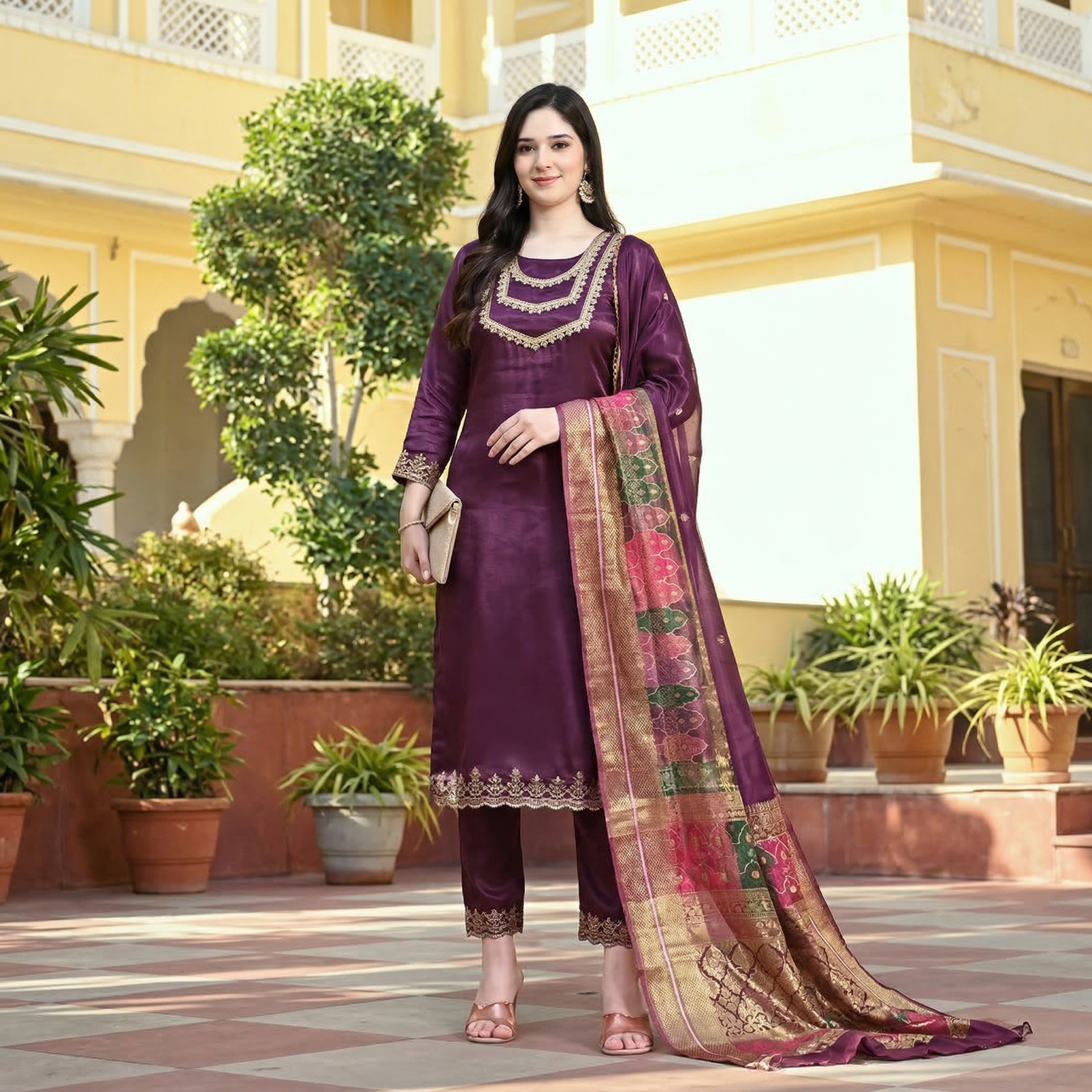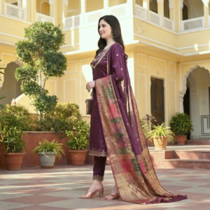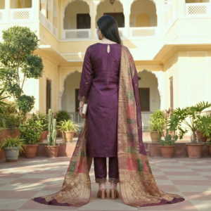 Be the first to review “Women Elegant Wine Purple Silk Kurta Set with Designer Dupatta”