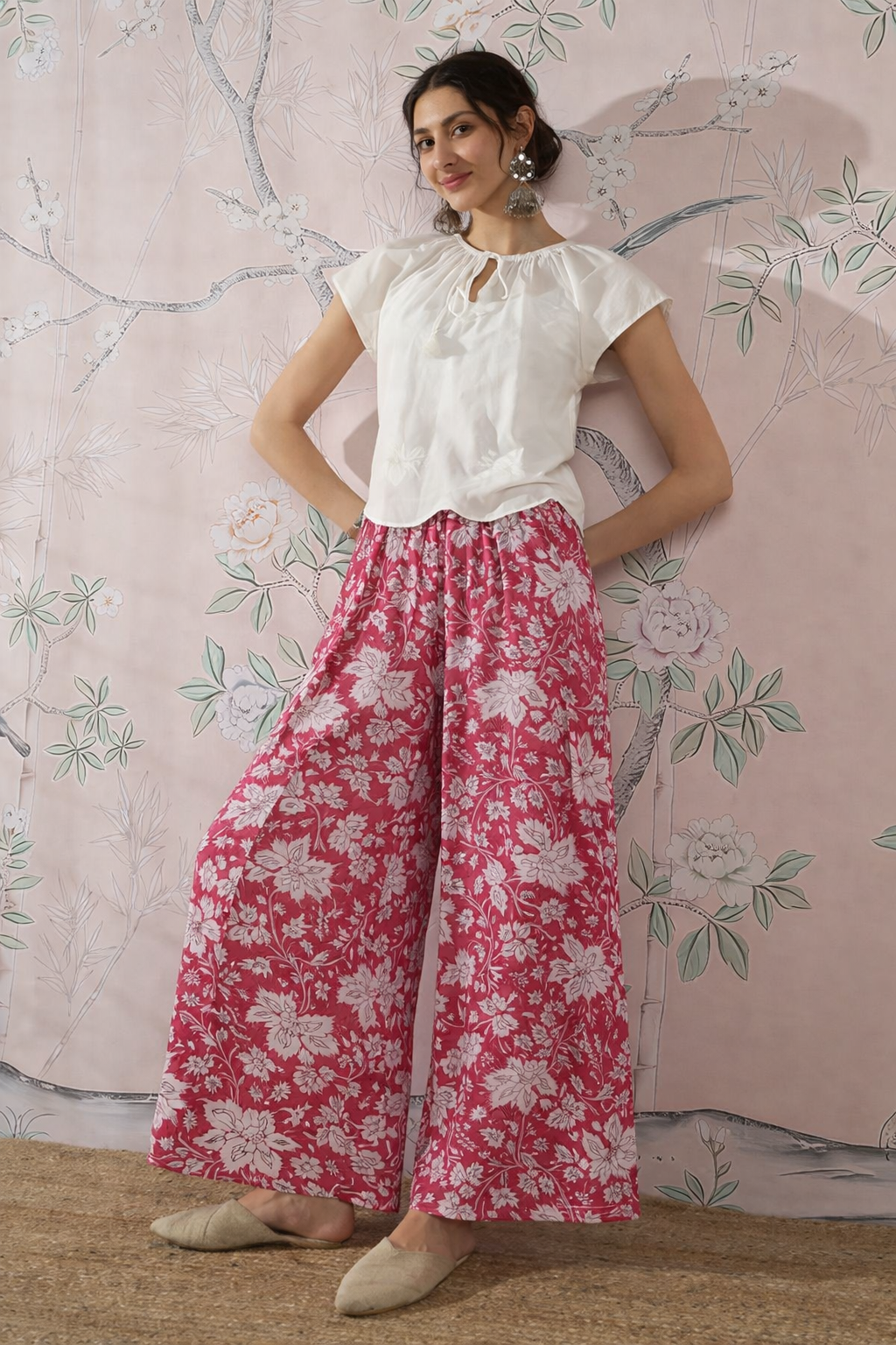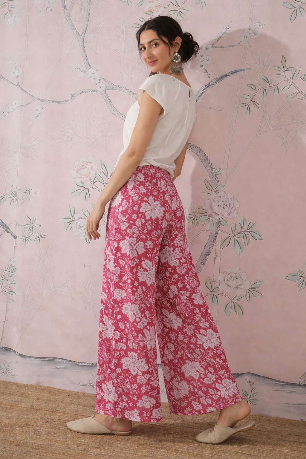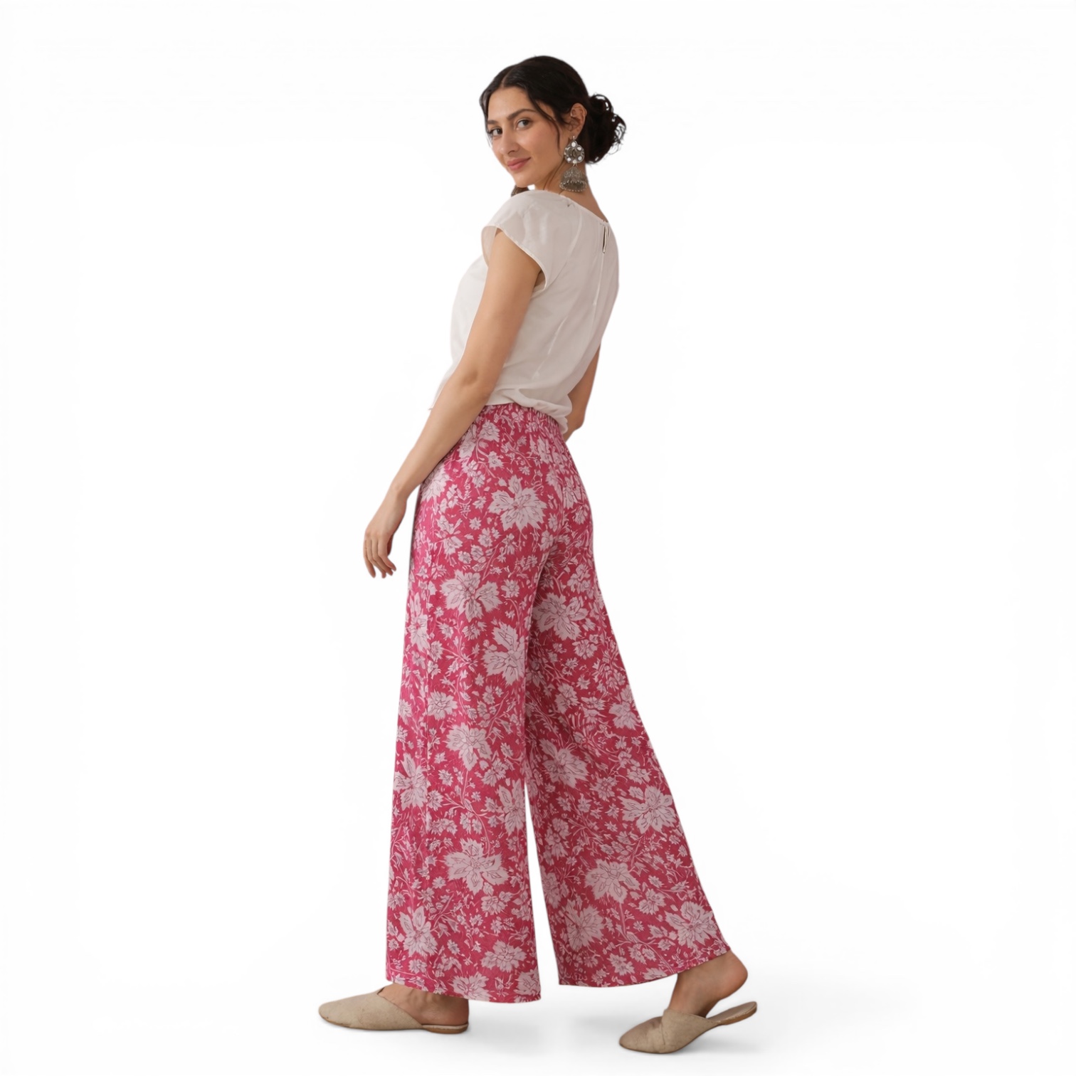 The eye-catching floral print gives a fresh and feminine look, making it ideal for casual outings, vacations, or ethnic styling. Crafted from soft and breathable fabric, these palazzos ensure ease of movement and all-day comfort.