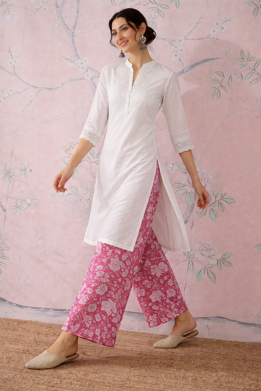 Pair these palazzos with a solid top (as shown) or a short kurti for a chic and comfortable look. Add flats or sliders for effortless everyday styling.